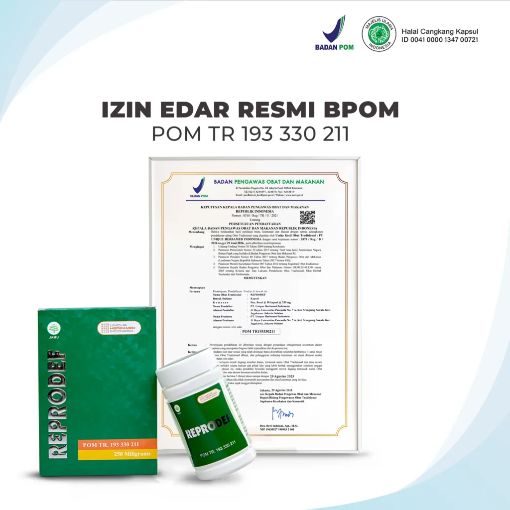 REPRODEF sudah lolos uji BPOM dengan sertifikasi POM TR. 193 330 211